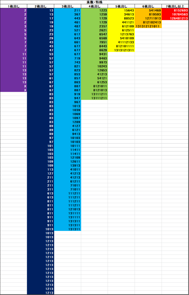 初心者向きにはもちろん、3枚3桁、4枚4桁、5枚5桁、etc.. の絵札なし素数を覚えるために活用できそうです。(対戦アプリ化求む!!!)