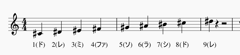 ドレミファソラシに1~7の数字を割り振るだけです。(譜例1)
